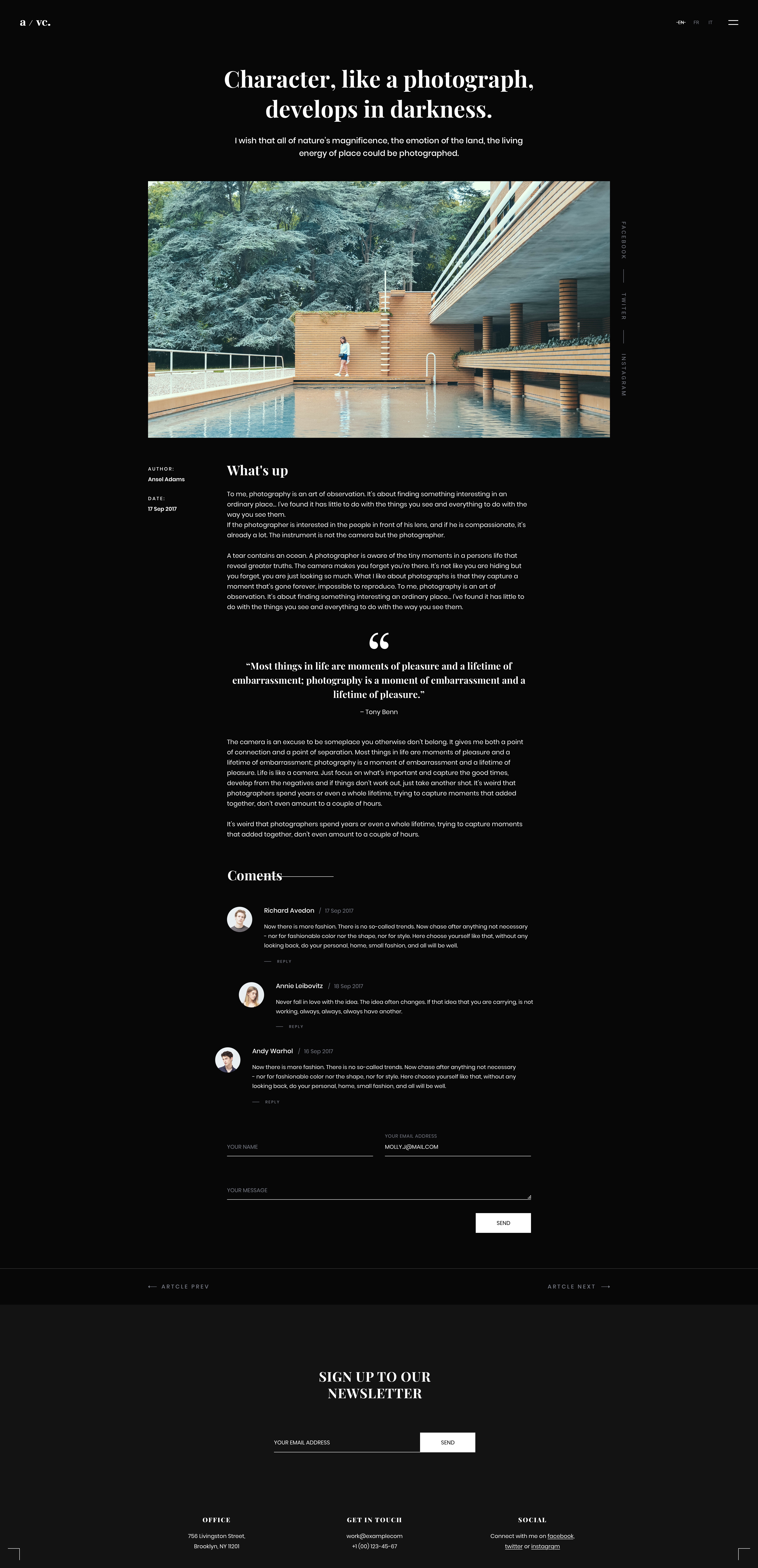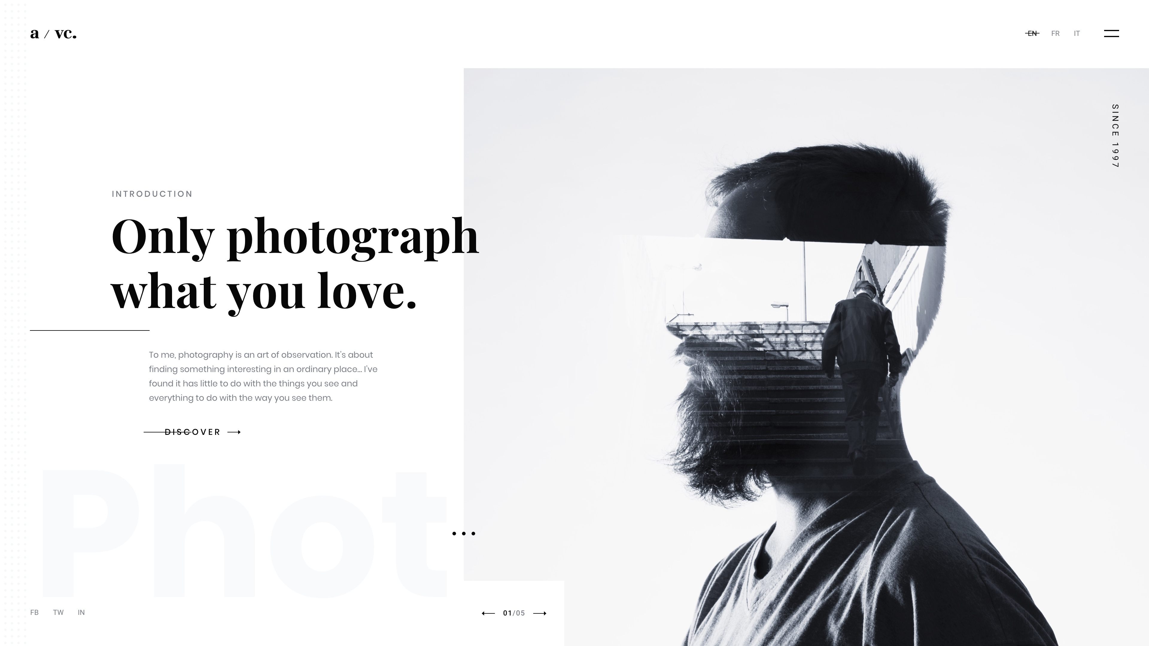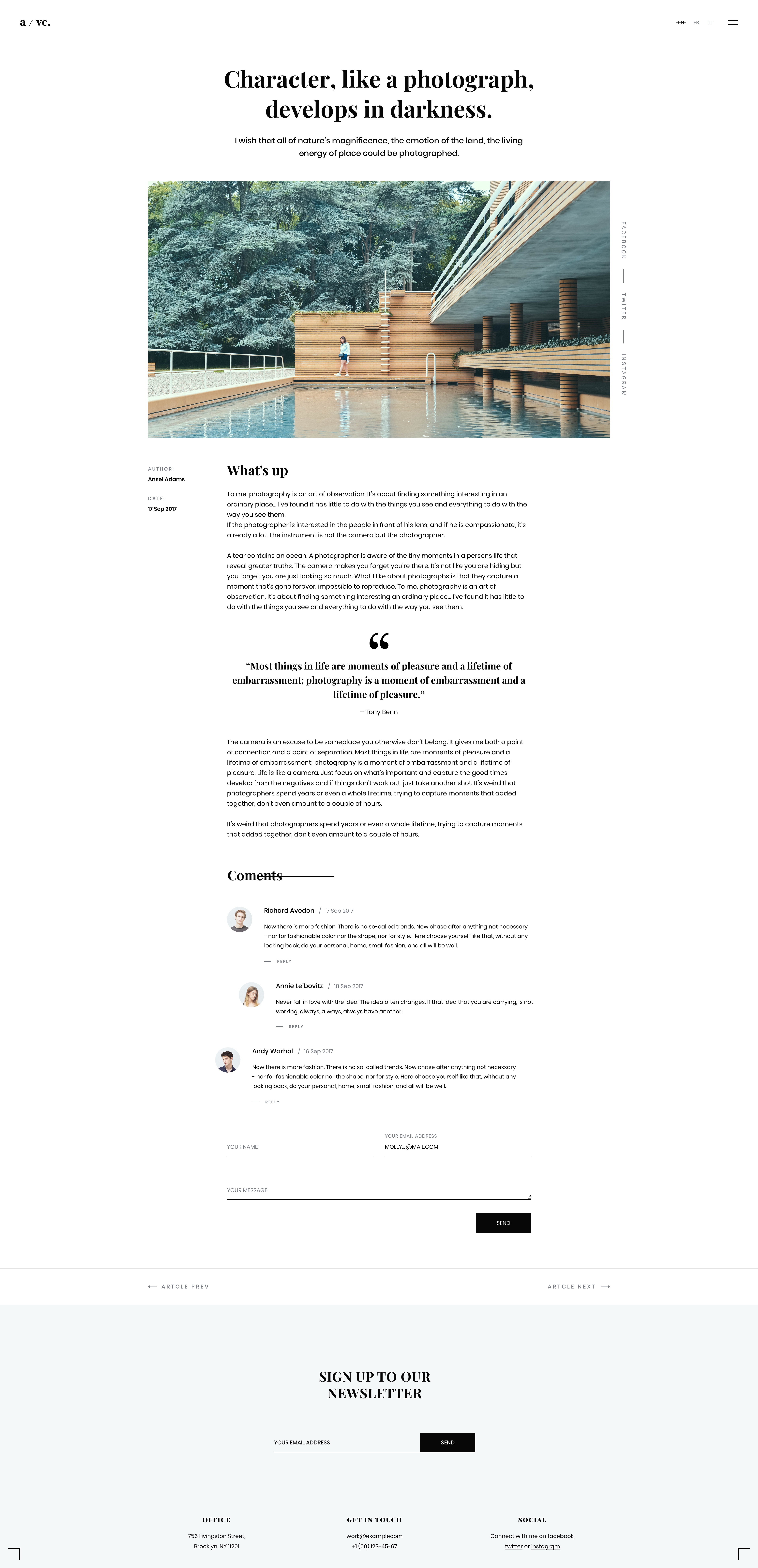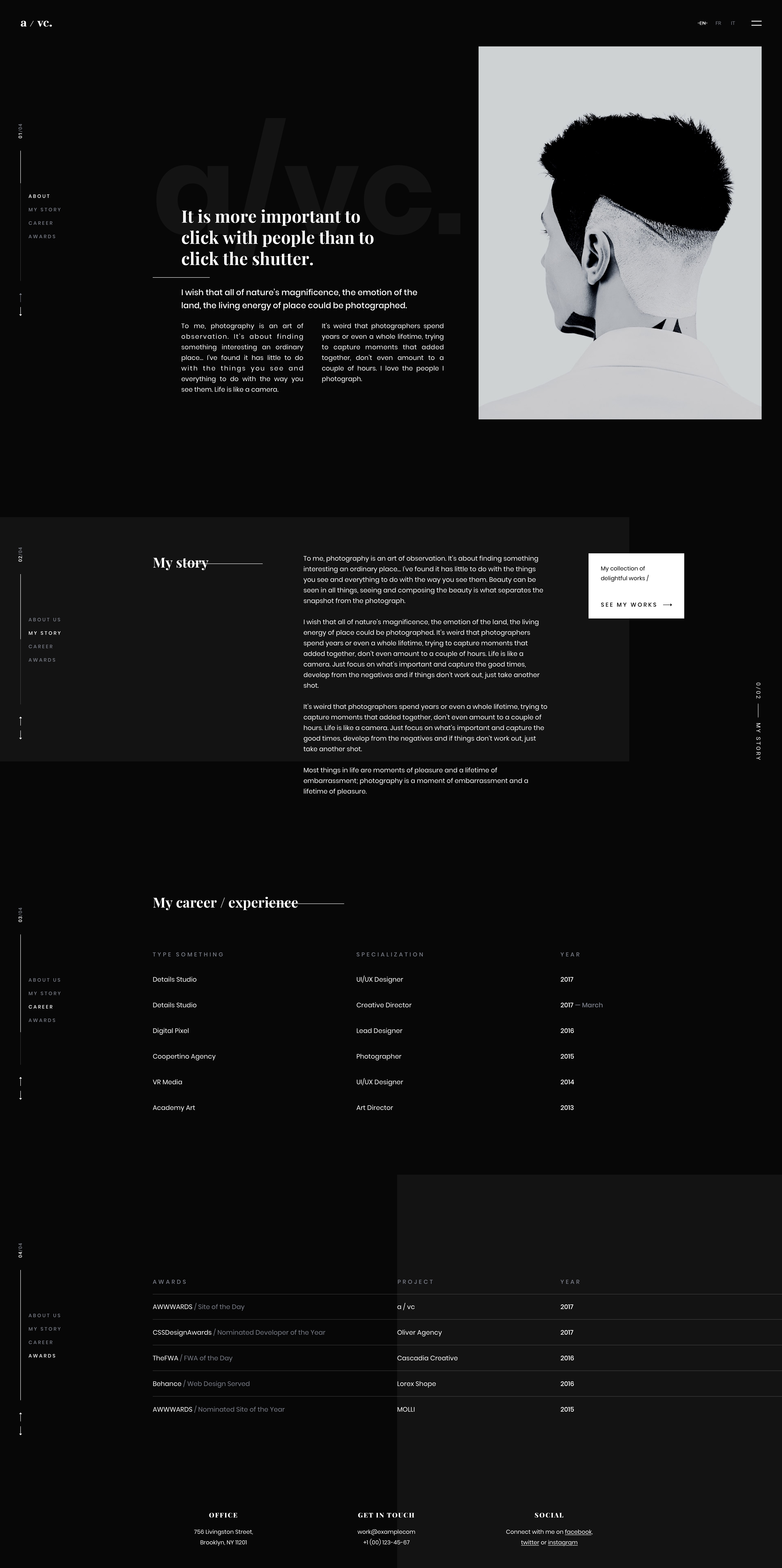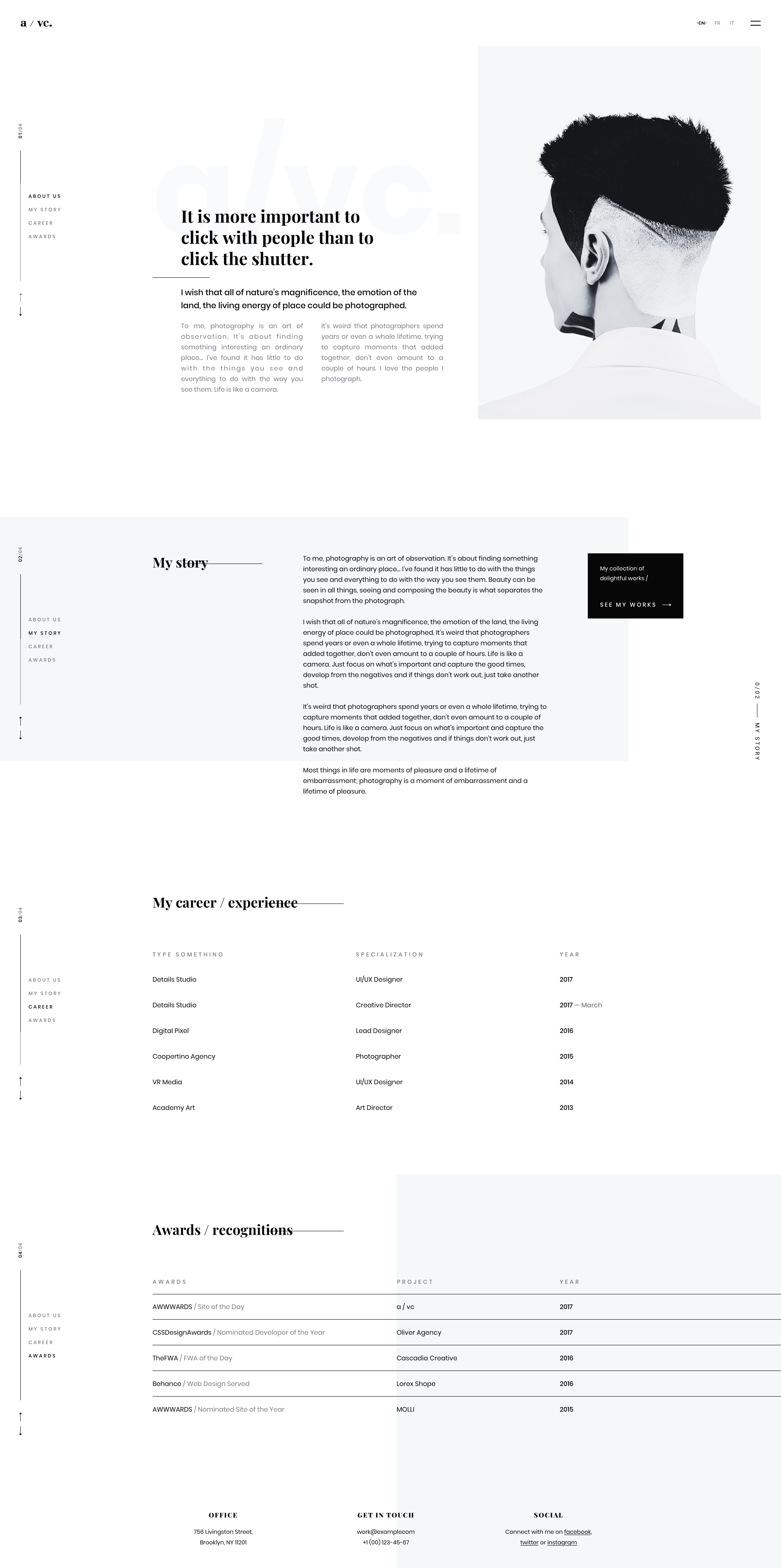 Fotico — is a trendy, minimalistic and ultra modern Sketch template for photographers, an architect, musicians, creative agencies, resumes, etc.